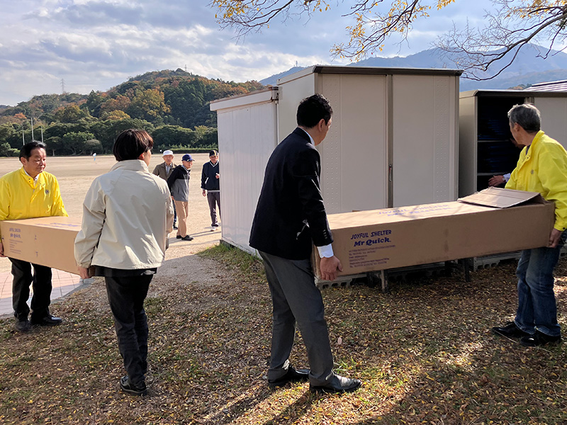 11月27日に、結成65周年記念事業で江津市に寄贈させていただいた、クイックテント2張りを教育委員会に納品いたしました。